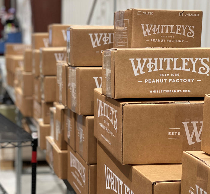Since 1986, Whitley's Peanut Factory has been producing the finest quality gourmet Virginia peanuts on the market. Our delicious "Home-Cooked" Virginia peanuts are still hand cooked and slowly roasted to perfection the old-fashioned way. Strictly selected for their size (super extra-large) and packaged at the peak of their flavor will assure you of always receiving a fine quality product from Whitley's.